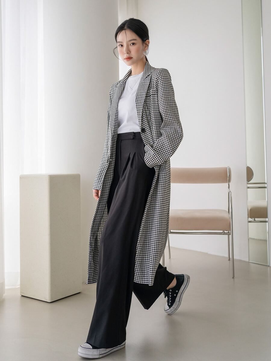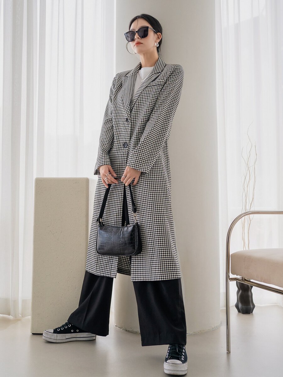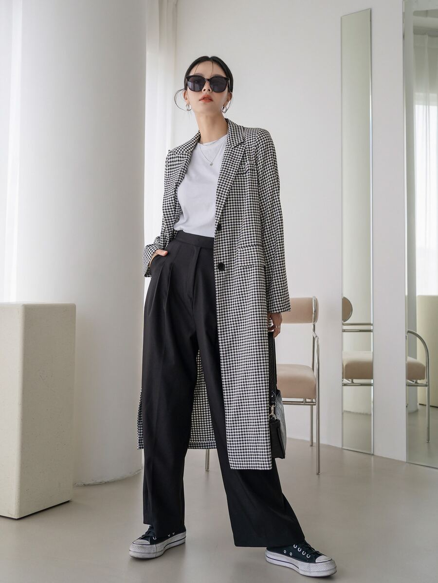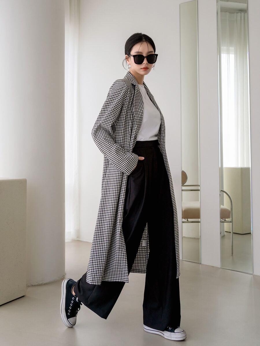 Abrigo de cuadros con doble bolsillo con solapa con botón delantero