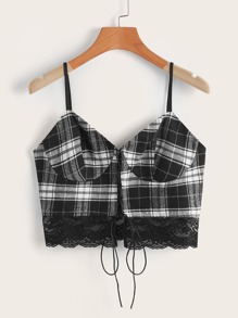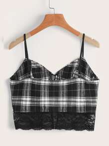 Cami corto de cuadros ribete con encaje