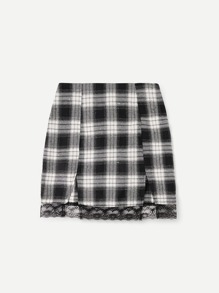 Falda con abertura ribete con encaje de cuadros