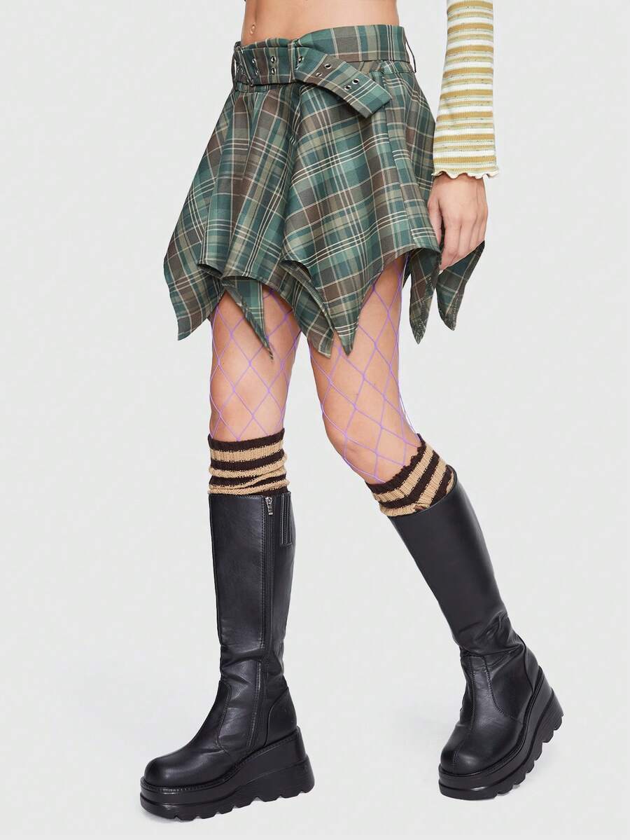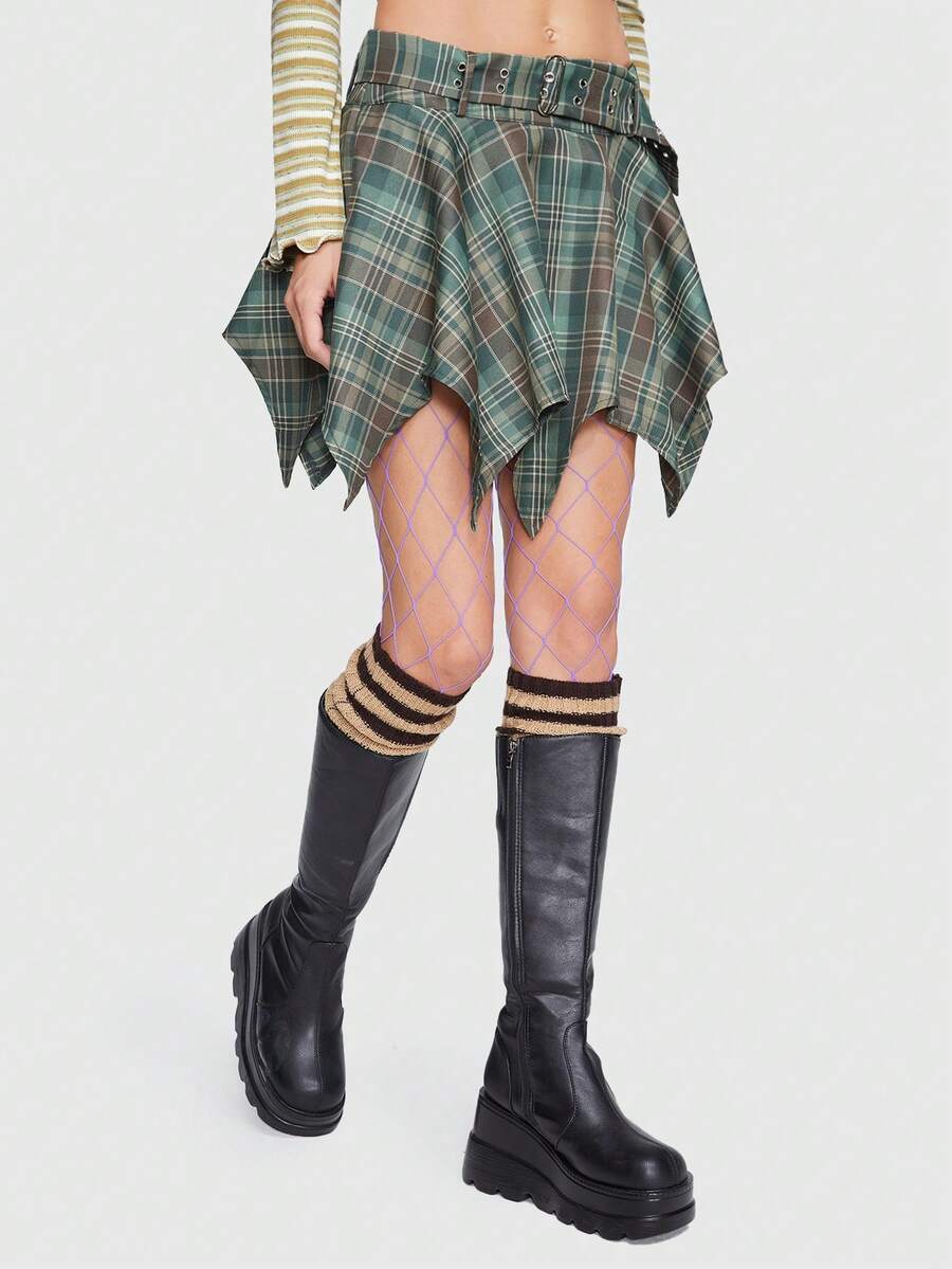 Falda con estampado de cuadros bajo asimétrico con cinturón