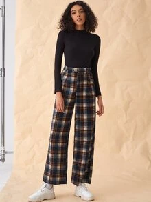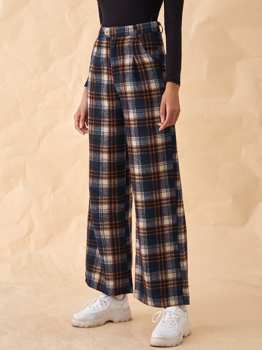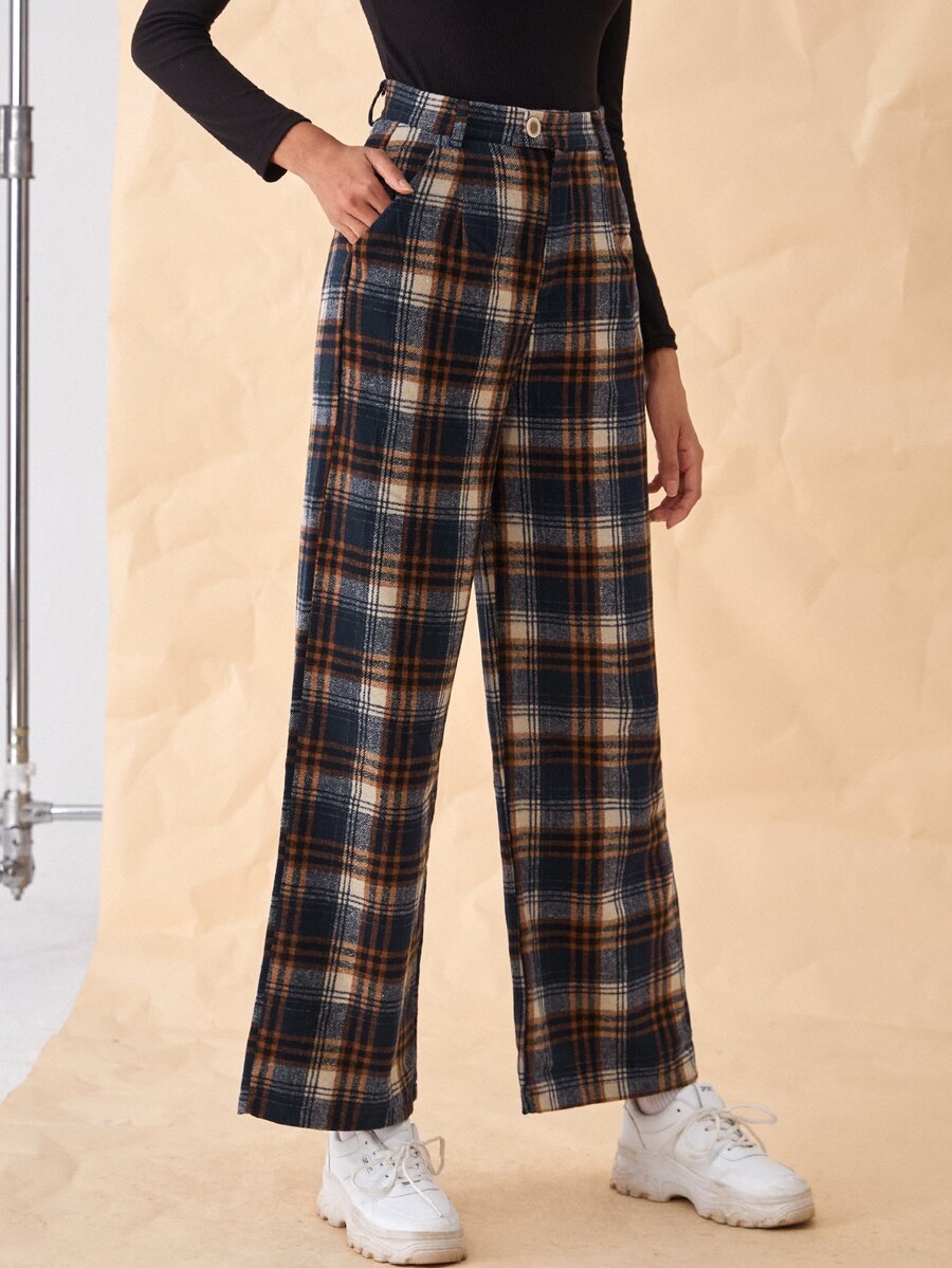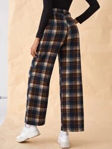 Pantalones con estampado de cuadros con bolsillo oblicuo