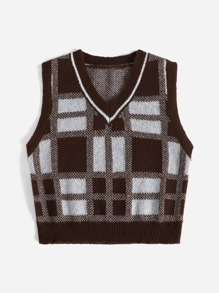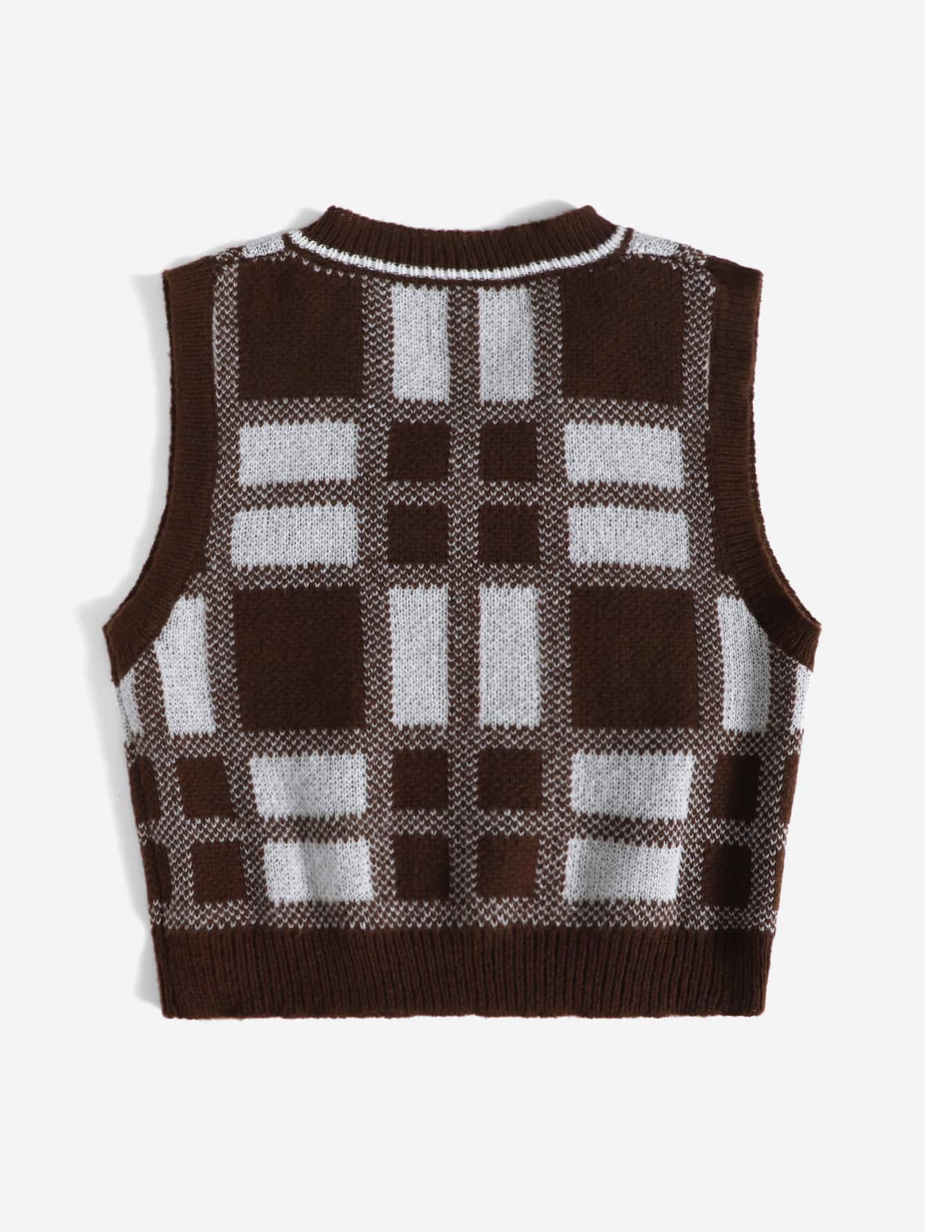 Chaleco de punto con estampado de cuadros