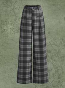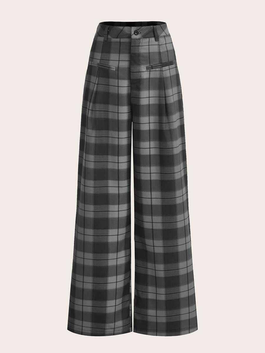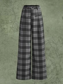 Fairycore Pantalones A Cuadros De Pierna Ancha