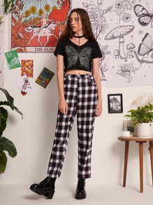 Pantalones de cuadros cremallera