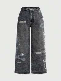 Grunge Punk Jeans asimétricos rasgados de mezclilla con cadena de metal, grommet, red y malla en estilo elegante, lindo, tropical, apretado y sexy, para vacaciones, conciertos, fiestas, tallas grandes, apropiados para verano, playa, graduación, Pascua, Nashville