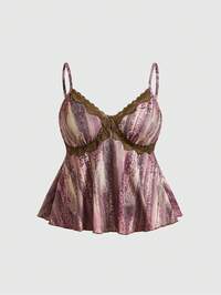 Fairycore Talla grande Top de tirantes con estampado de rayas ribete con encaje