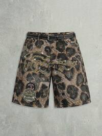 Grunge Punk Pantalones cortos de mezclilla casuales con bolsillos y adornos de strass con estampado de leopardo para mujer de talla grande