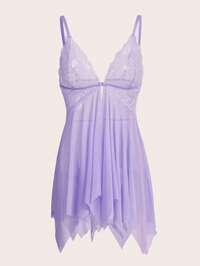 Kawaii Conjunto de babydoll y tanga de encaje y malla en talla grande, sexy y lindo