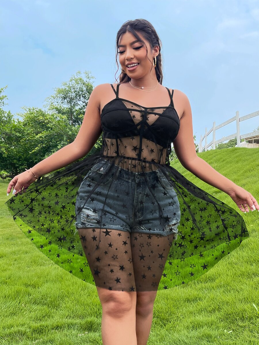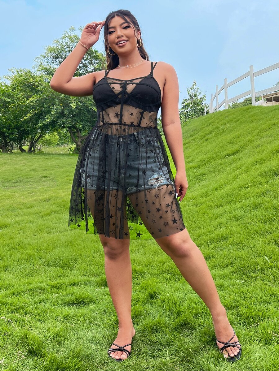 1 pieza Vestido de tirantes transparente con estrella de malla