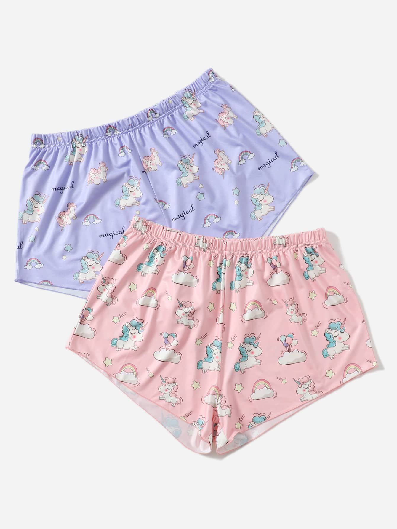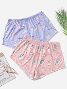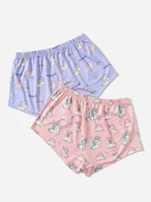 2 piezas Shorts de dormir con estampado de unicornio