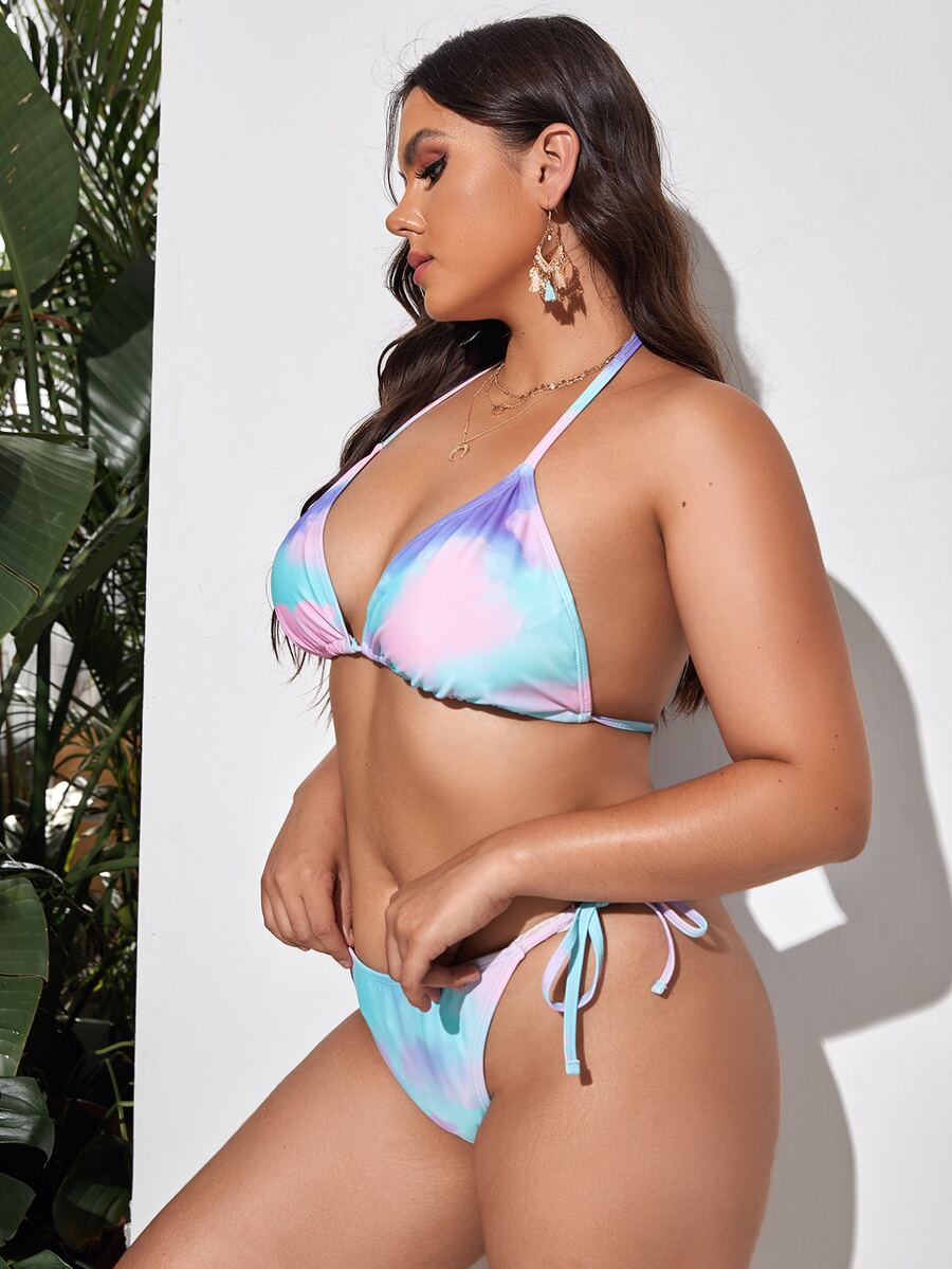 Conjunto de bikini de 3 piezas con estampado de teñido anudado y falda de playa de talla grande para verano