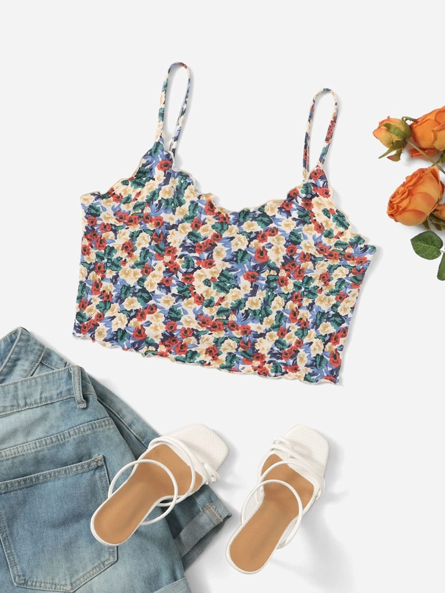 Top de tirantes floral ribete en forma de lechuga
