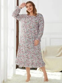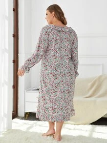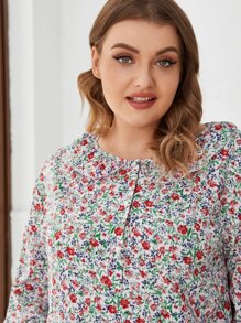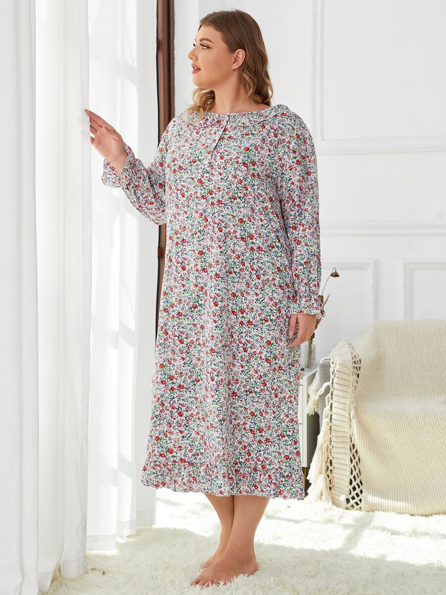 Pijama de cuello Peter Pan de gran tamaño con estampado floral completo