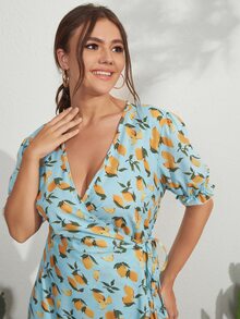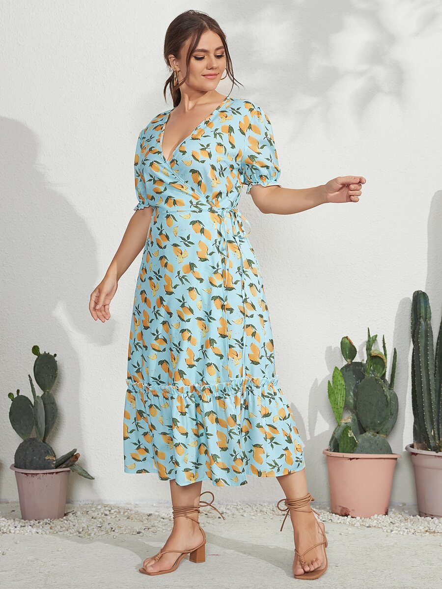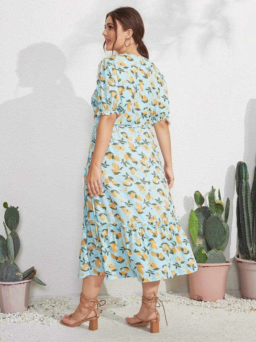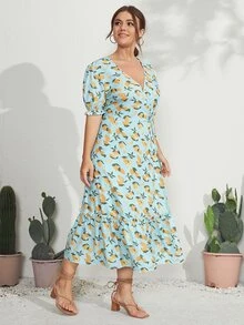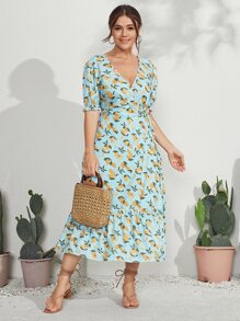 Vestidos Tallas Grandes Nudo Volante rígido Envolvente Frutas y verduras todo estampado Bohemio