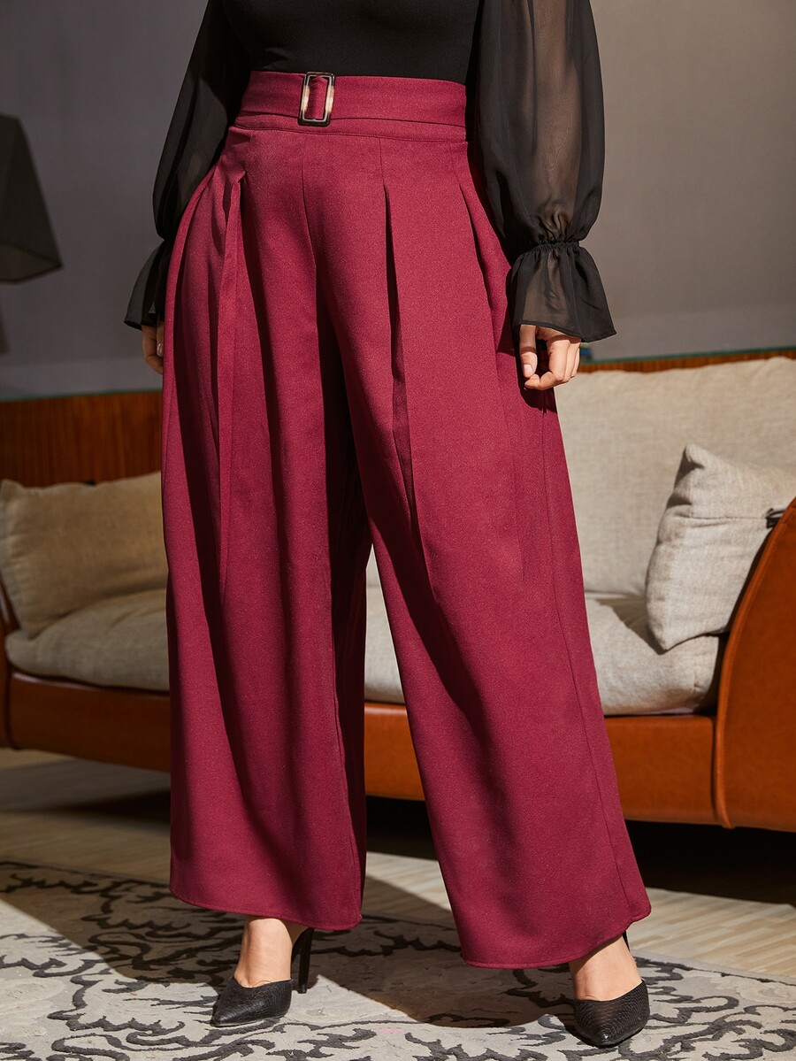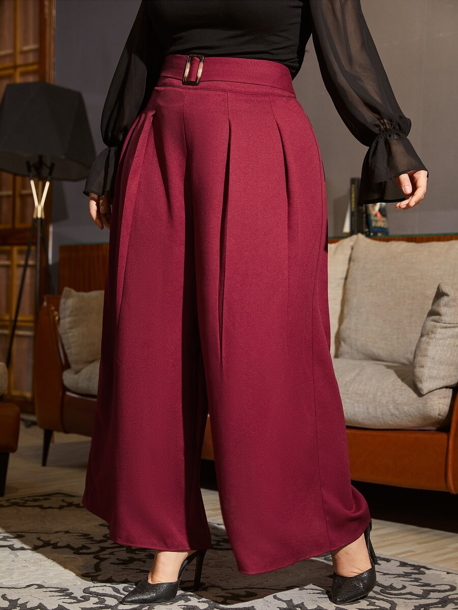 Pantalones palazzo con fruncido con cinturón con hebilla
