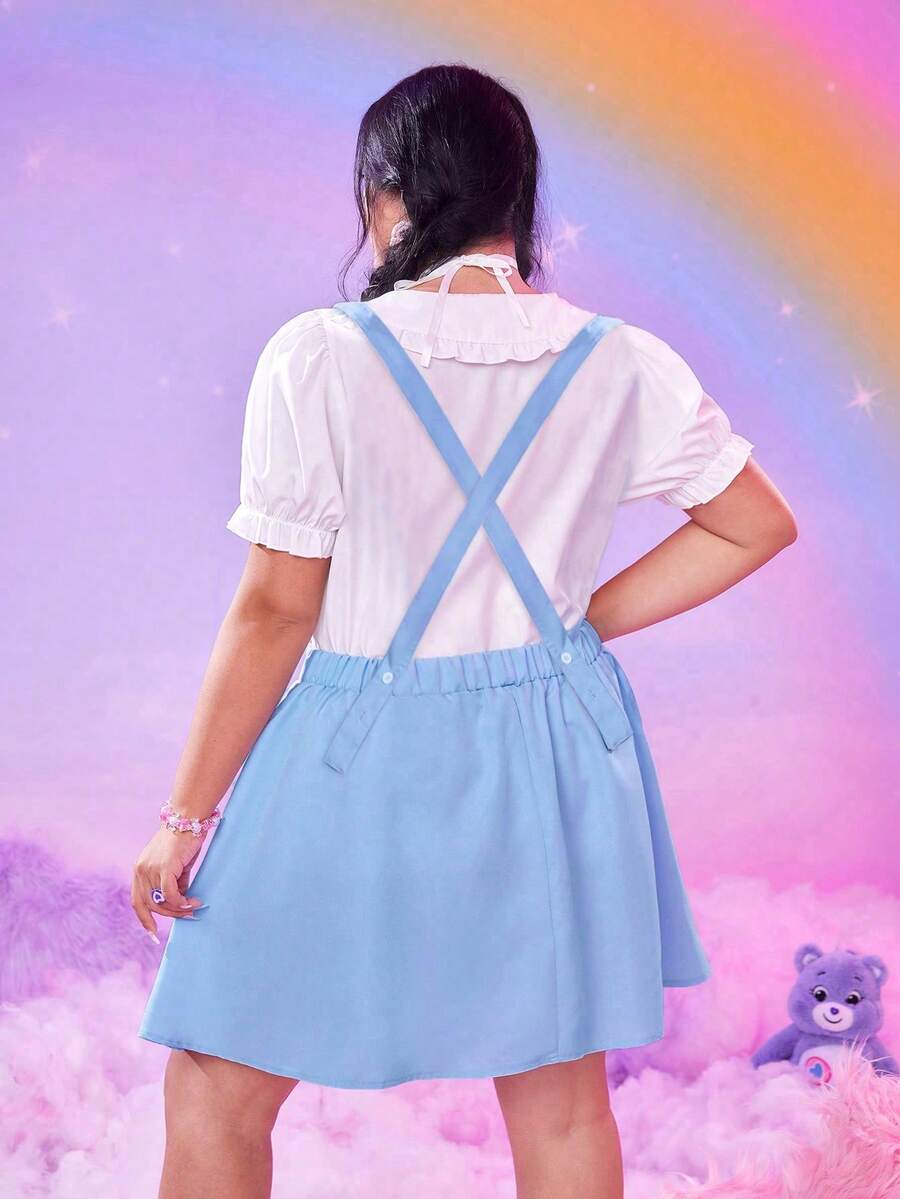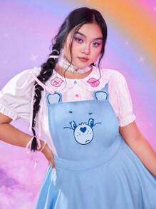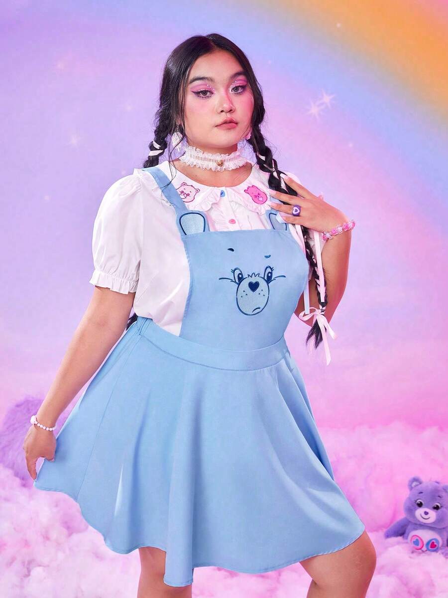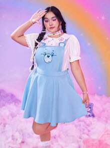 ROMWE X Care Bears Vestido Con Bordado De Dibujos Animados Sin Camiseta En General, Talla Grande