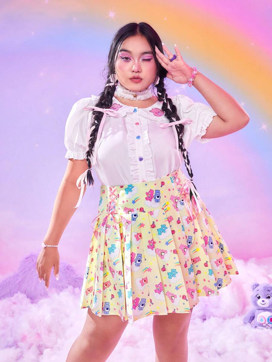 ROMWE X Care Bears Talla grande Falda fruncido con estampado de dibujos animados