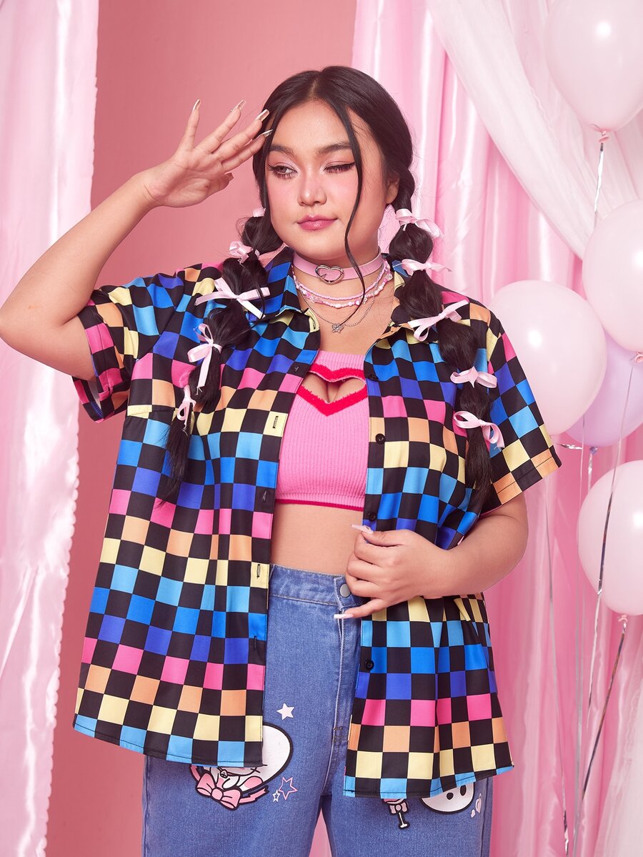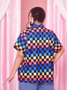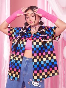 Anime Blusas Extra Grandes Botón delantero A cuadros Casual