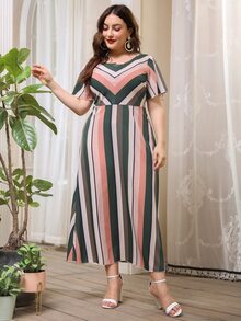 Vestido línea A de color combinado con estampado de rayas