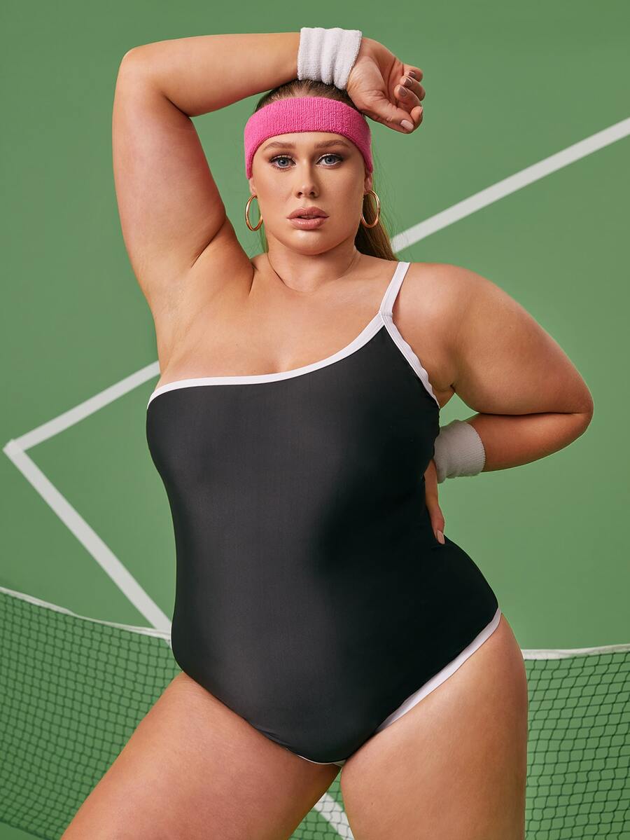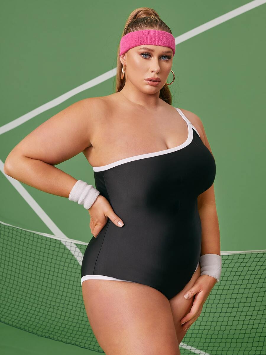 Bañador una pieza de un hombro unido en contraste