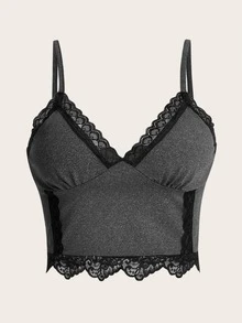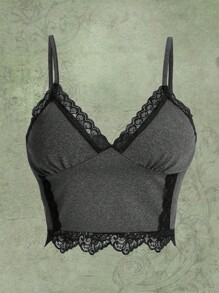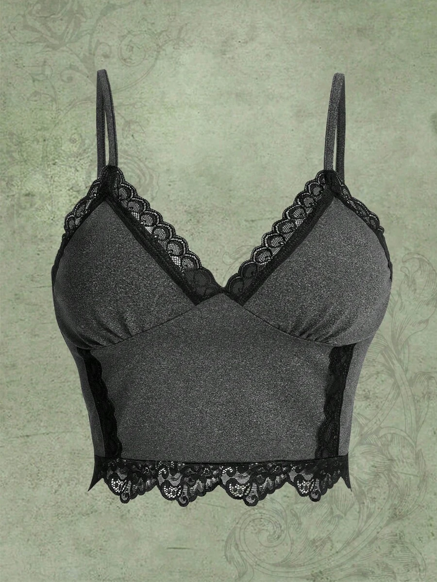Fairycore Top de tirantes con encaje en contraste