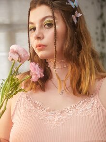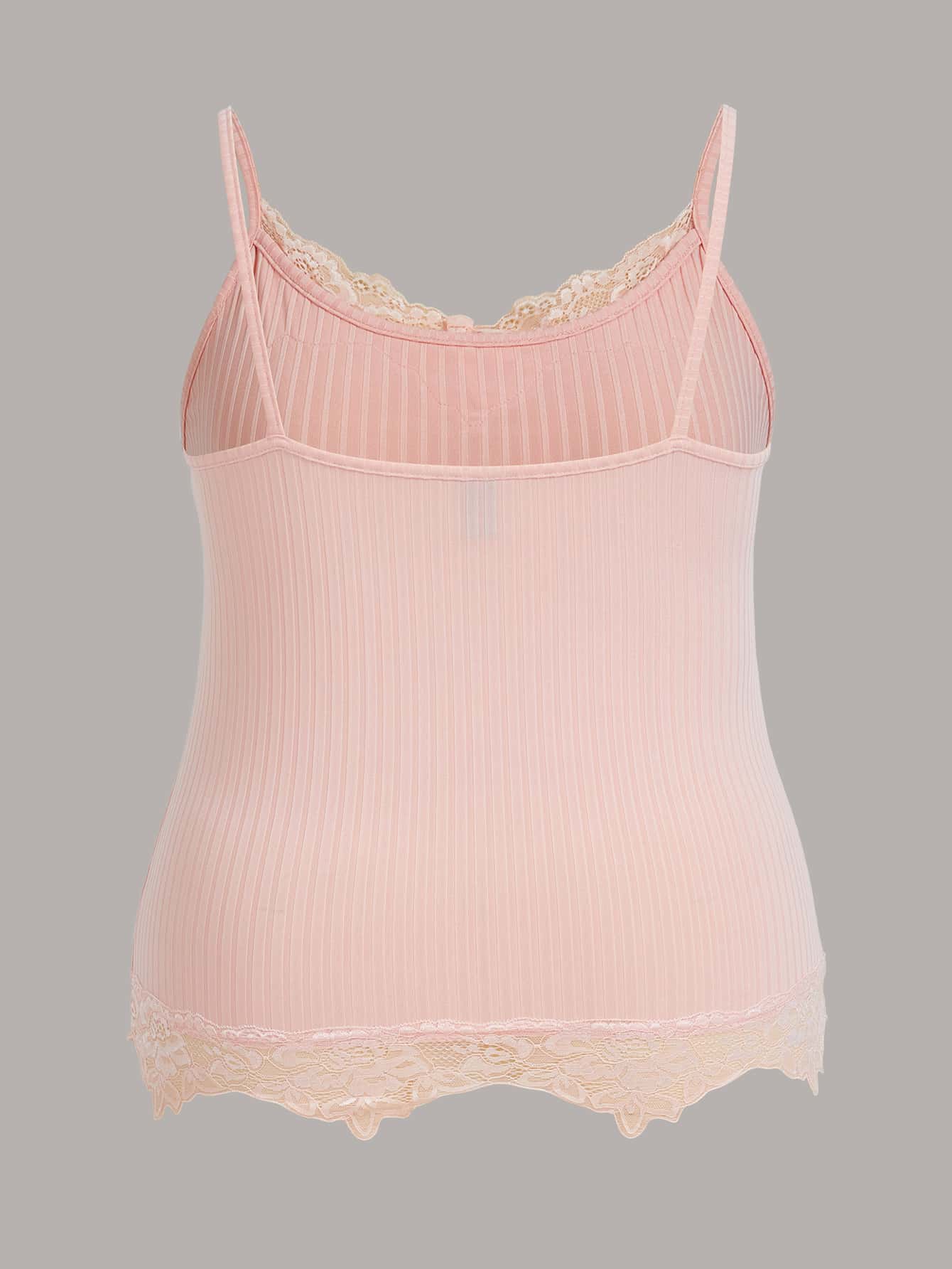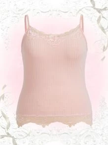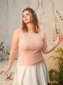 Top de tirantes de talla grande Encaje en contraste Canalé Liso Casual