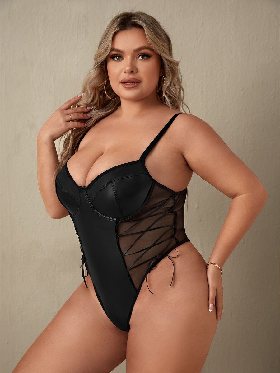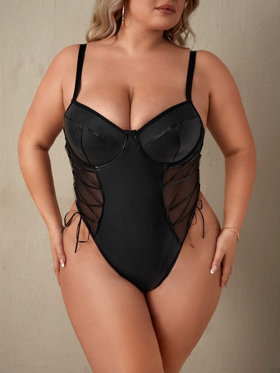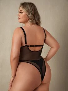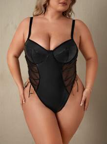 Body teddy de malla en contraste con cordón con aro sin bragas