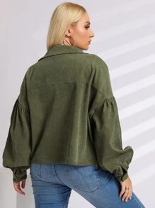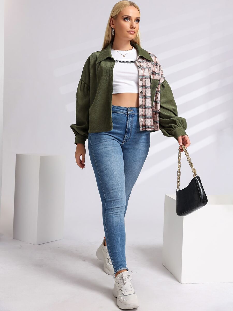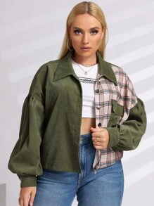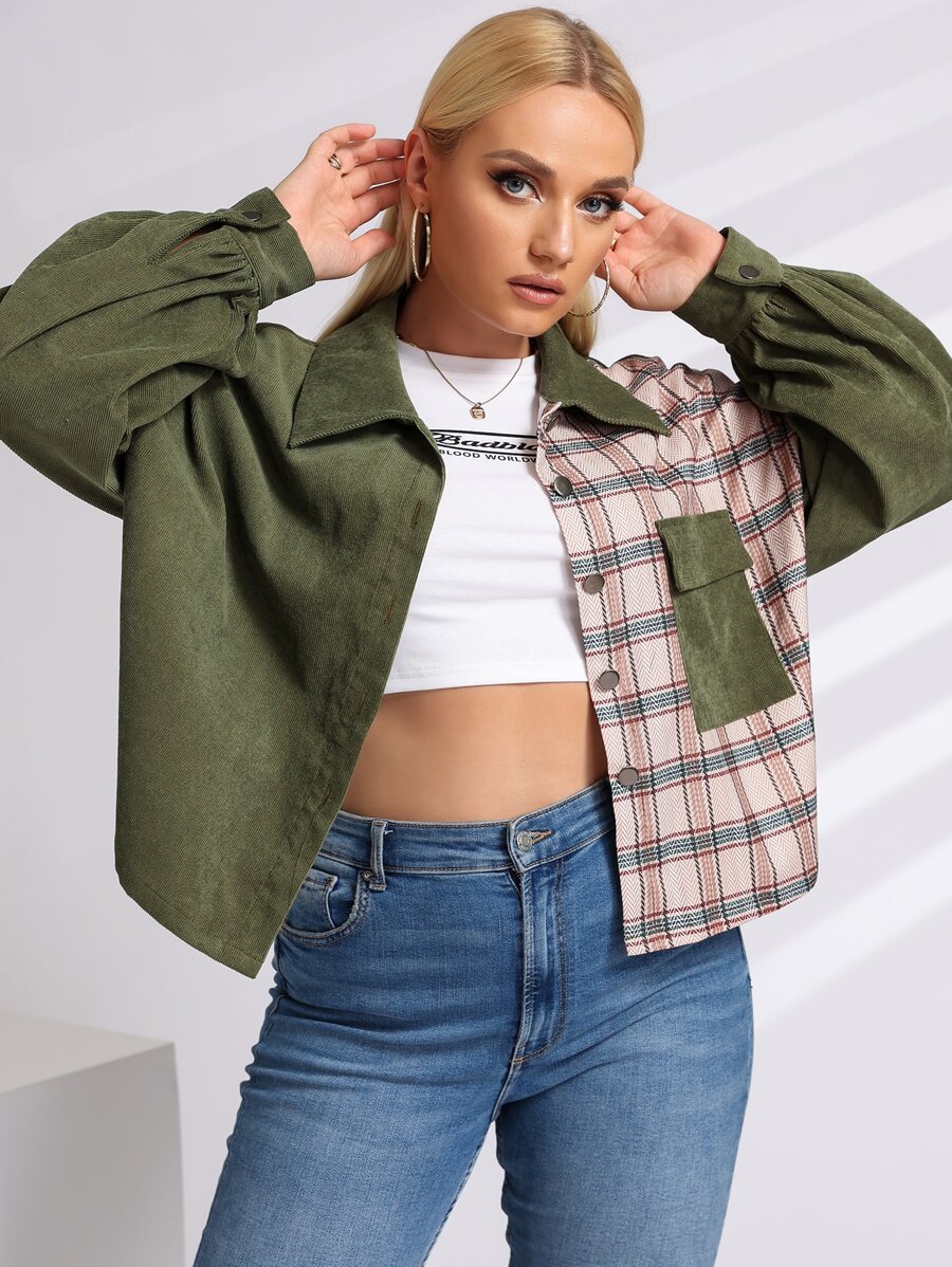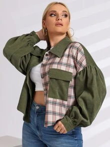 Cazadora de pana panel de cuadros con bolsillo con solapa de manga obispo