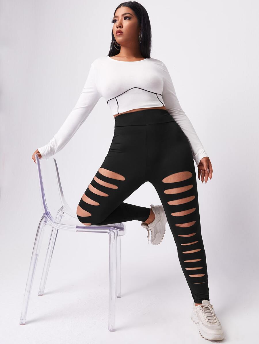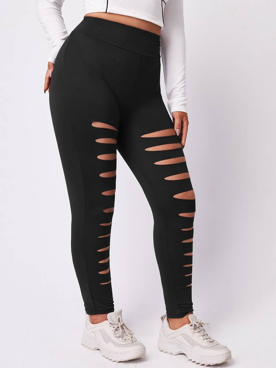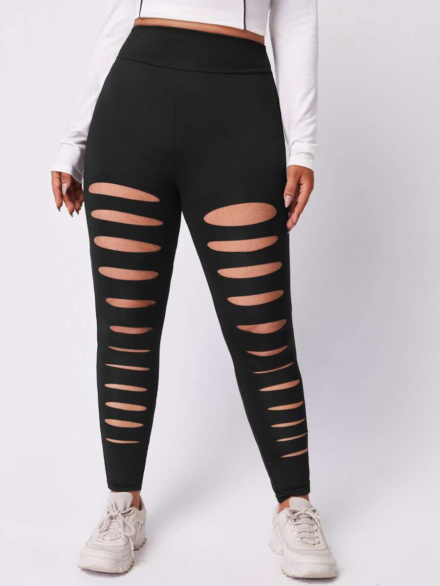 Leggings de talla grande Cut-out Liso Casual