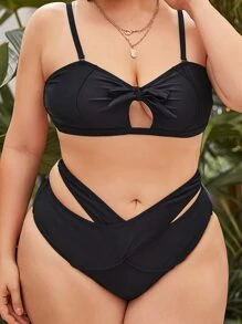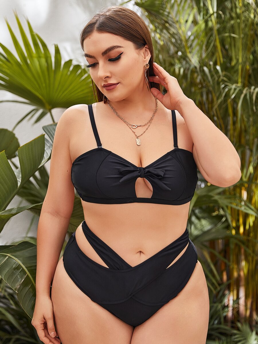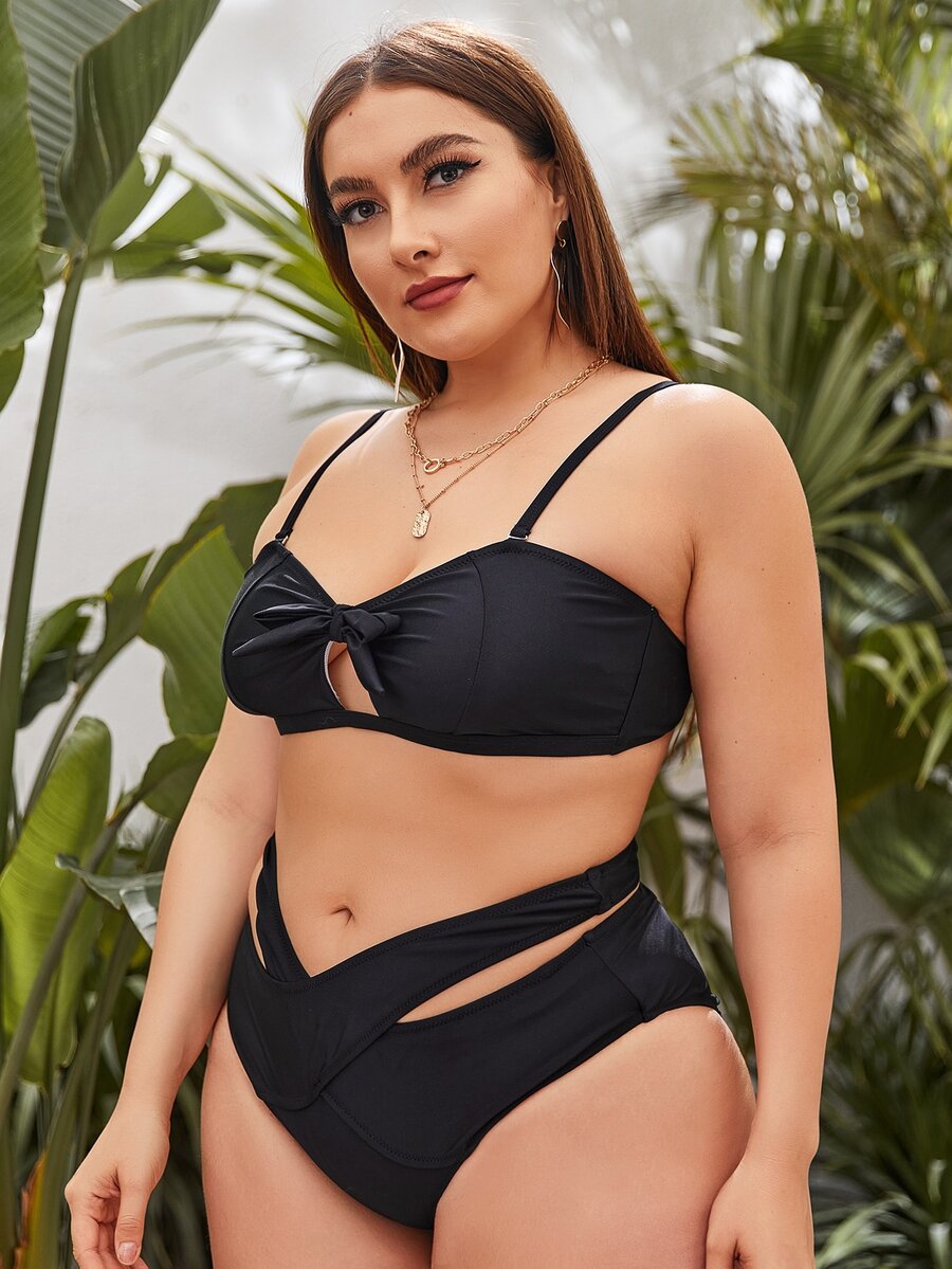 Conjunto de bikini con corte y nudo talla grande para la playa de verano