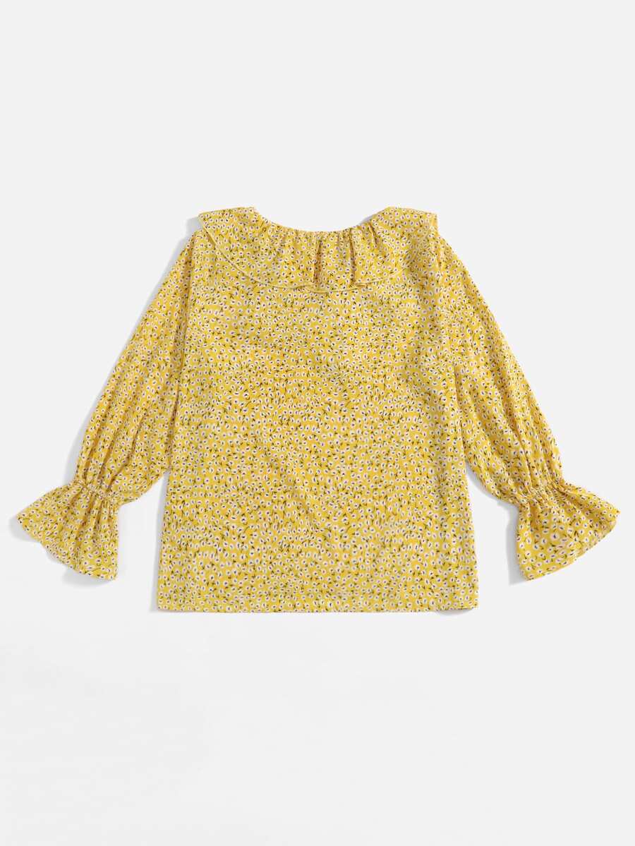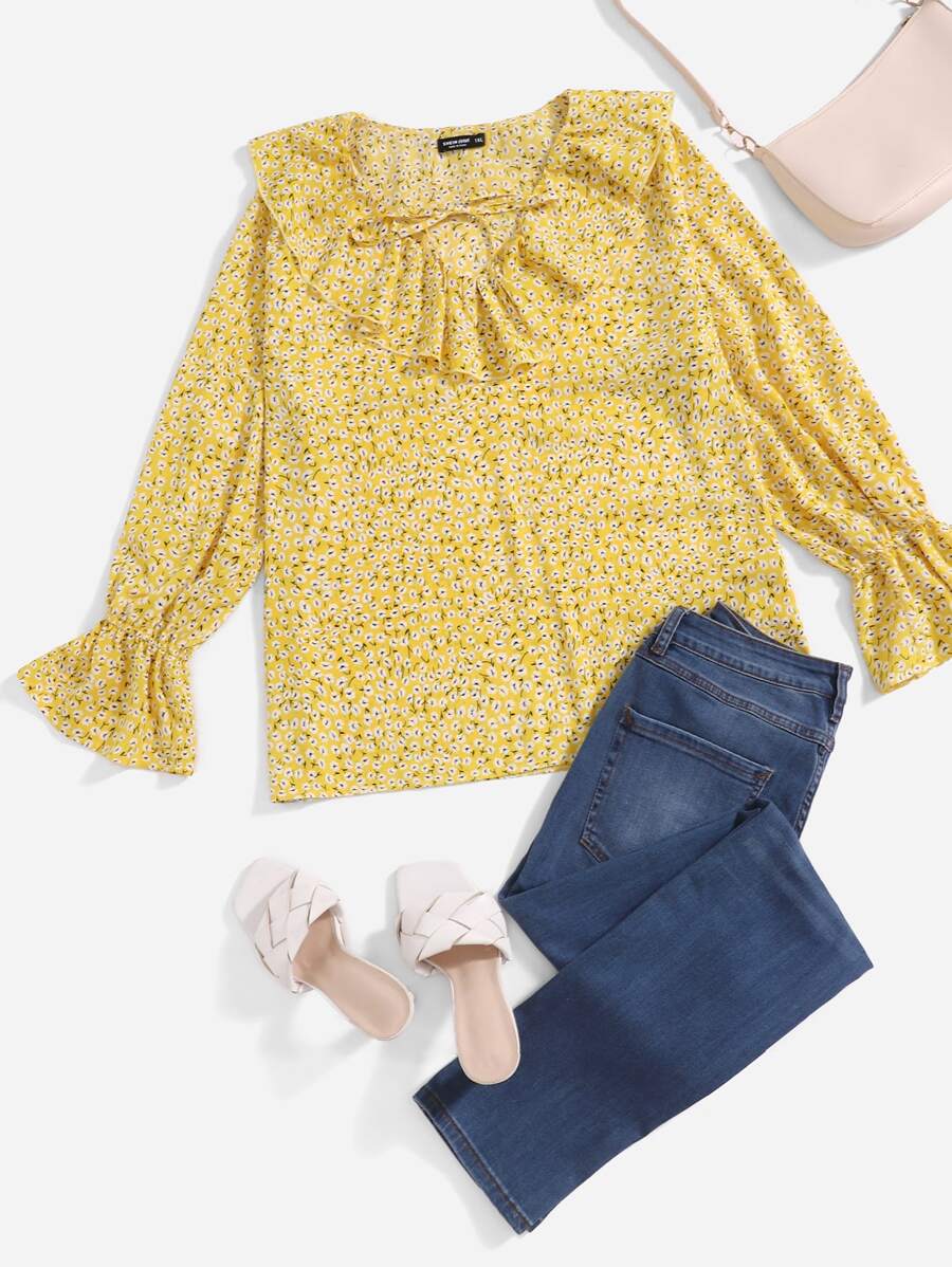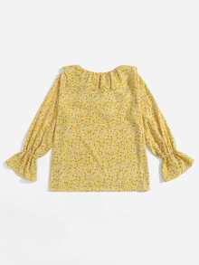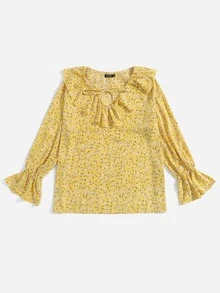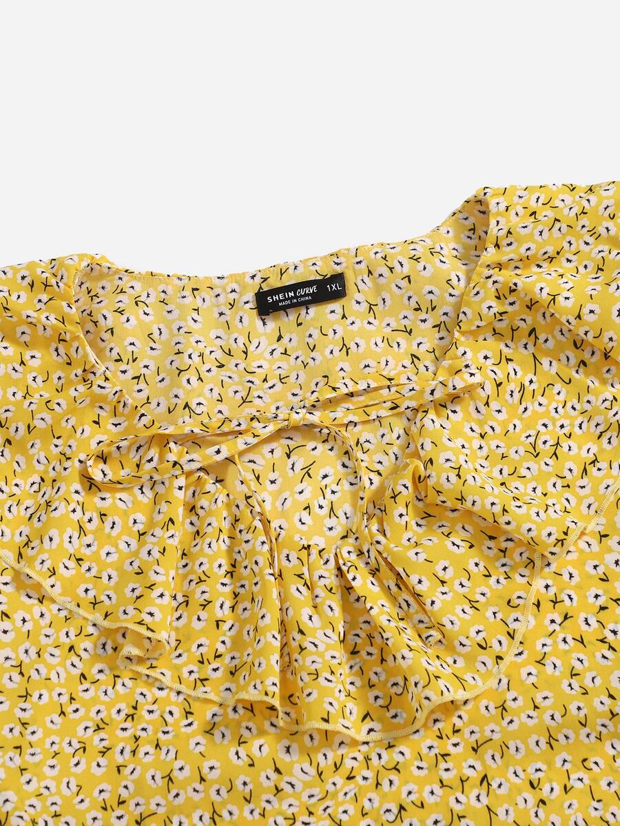 Blusa con estampado floral con nudo delantero ribete con fruncido de manga con volante