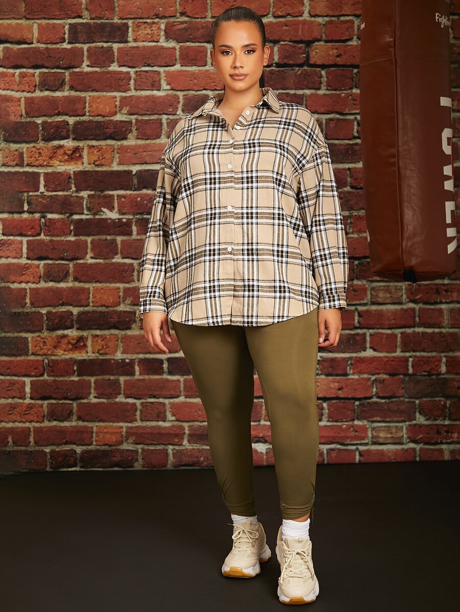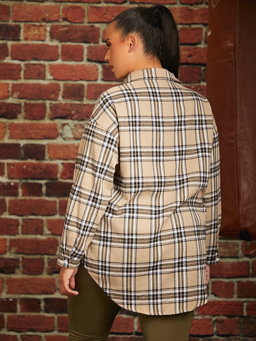 Camisa de hombros caídos con estampado de cuadros bajo curvo