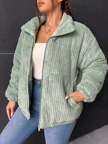 Abrigo acolchado con cremallera y hombros caídos talla extra