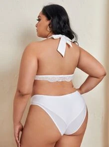 Conjunto De Lencería De Encaje Floral Con Sujetador Halter En Tallas Grandes