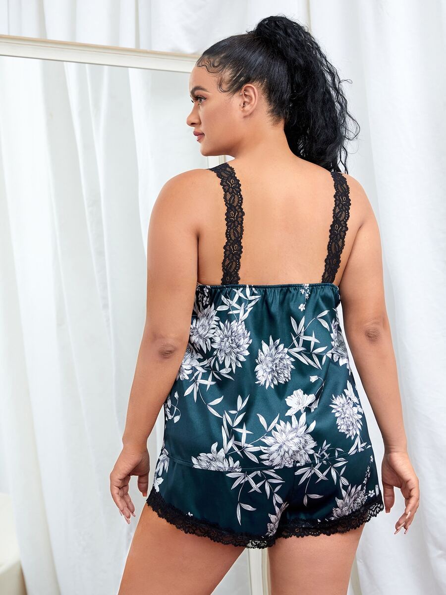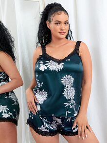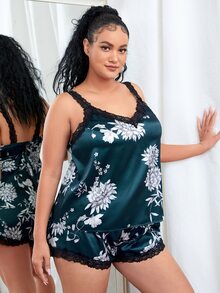 Pijamas de Talla Grande Encaje en contraste Ribete en contraste Floral Elegante