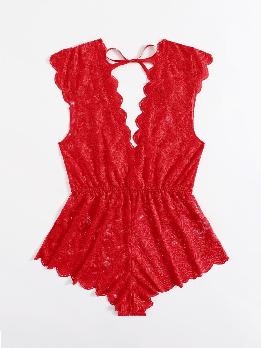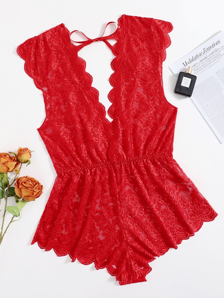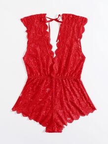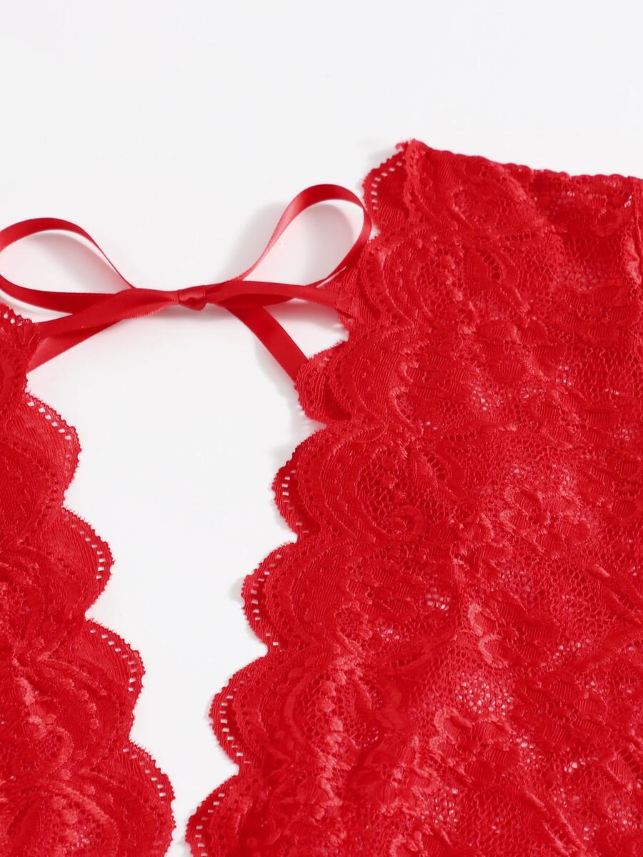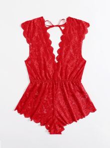 Body Teddy Sexy De Encaje Floral Plus Size Con Detalle Festoneado