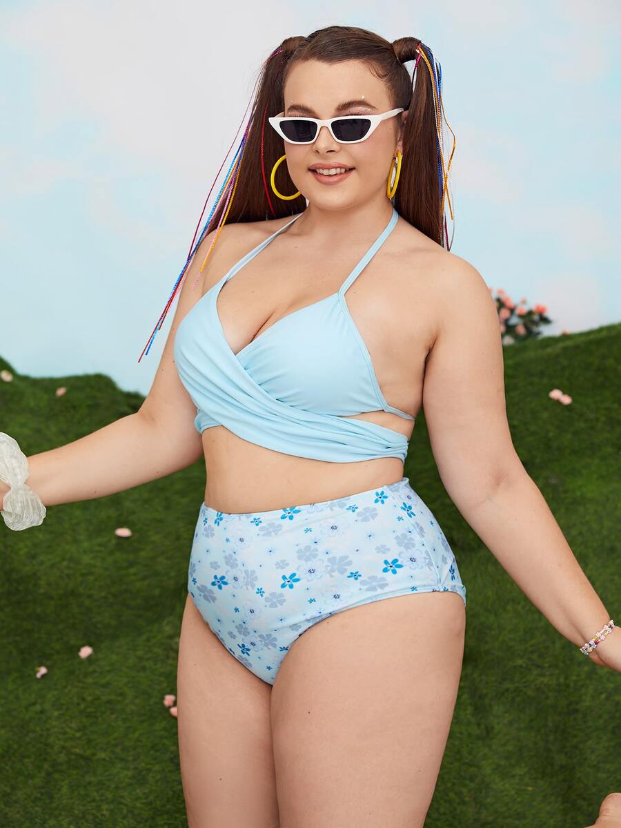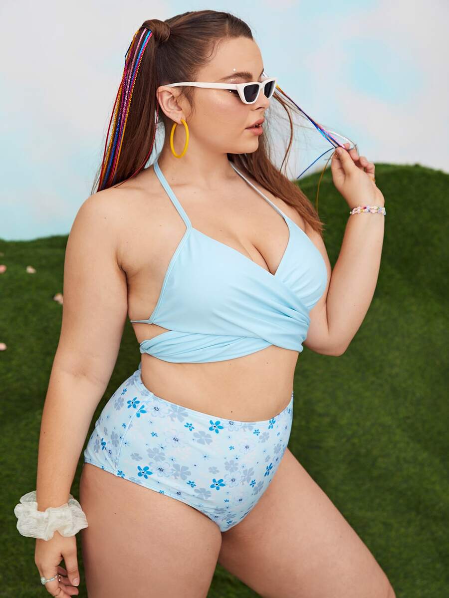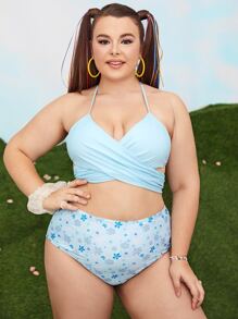 Conjunto de bikini cruzado con estampado floral de talla grande para la playa de verano