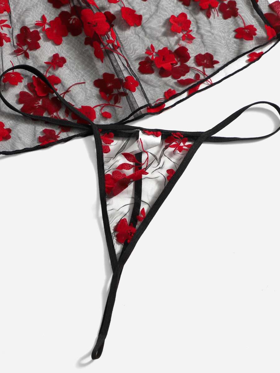 Vestido con estampado floral de malla transparente de hombros descubiertos con tanga