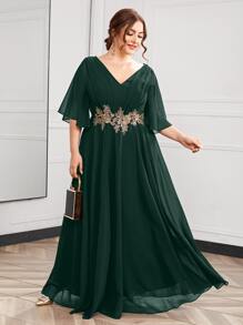 Vestido de fiesta de noche largo con mangas acampanadas, aplicaciones y volantes, elegante vestido formal para graduaciones, cenas, fiestas de Navidad