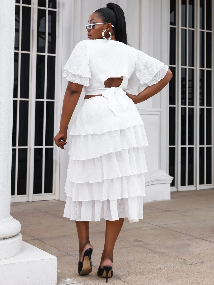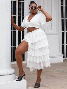 seomiscky de manga con volante Top & bajo a capas Falda Conjunto