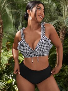 Conjunto de bikini con volantes de cuadros para talla grande, playa de verano