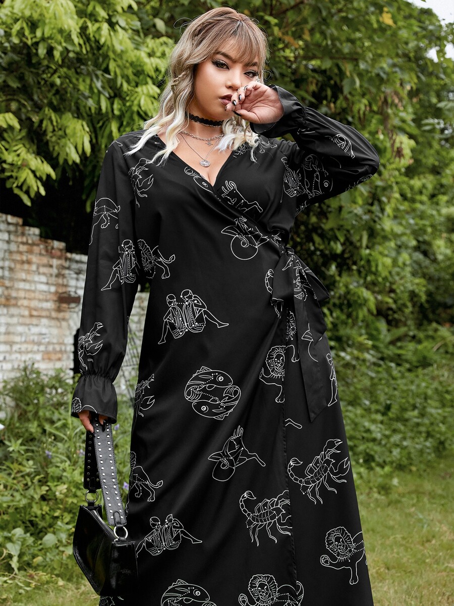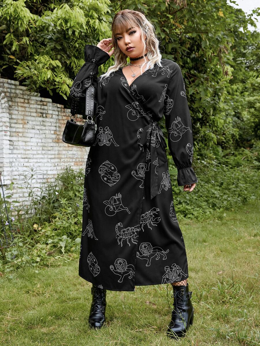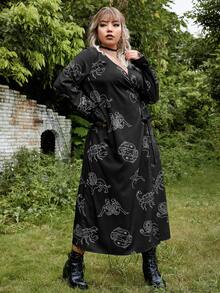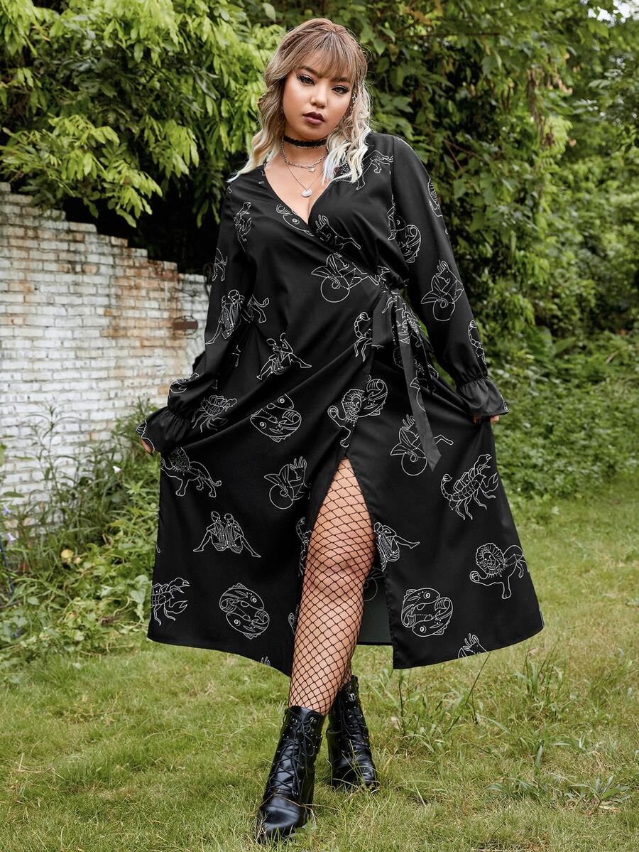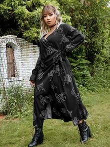 Vestido cruzado grunge con estampado de figura con cordón lateral