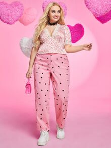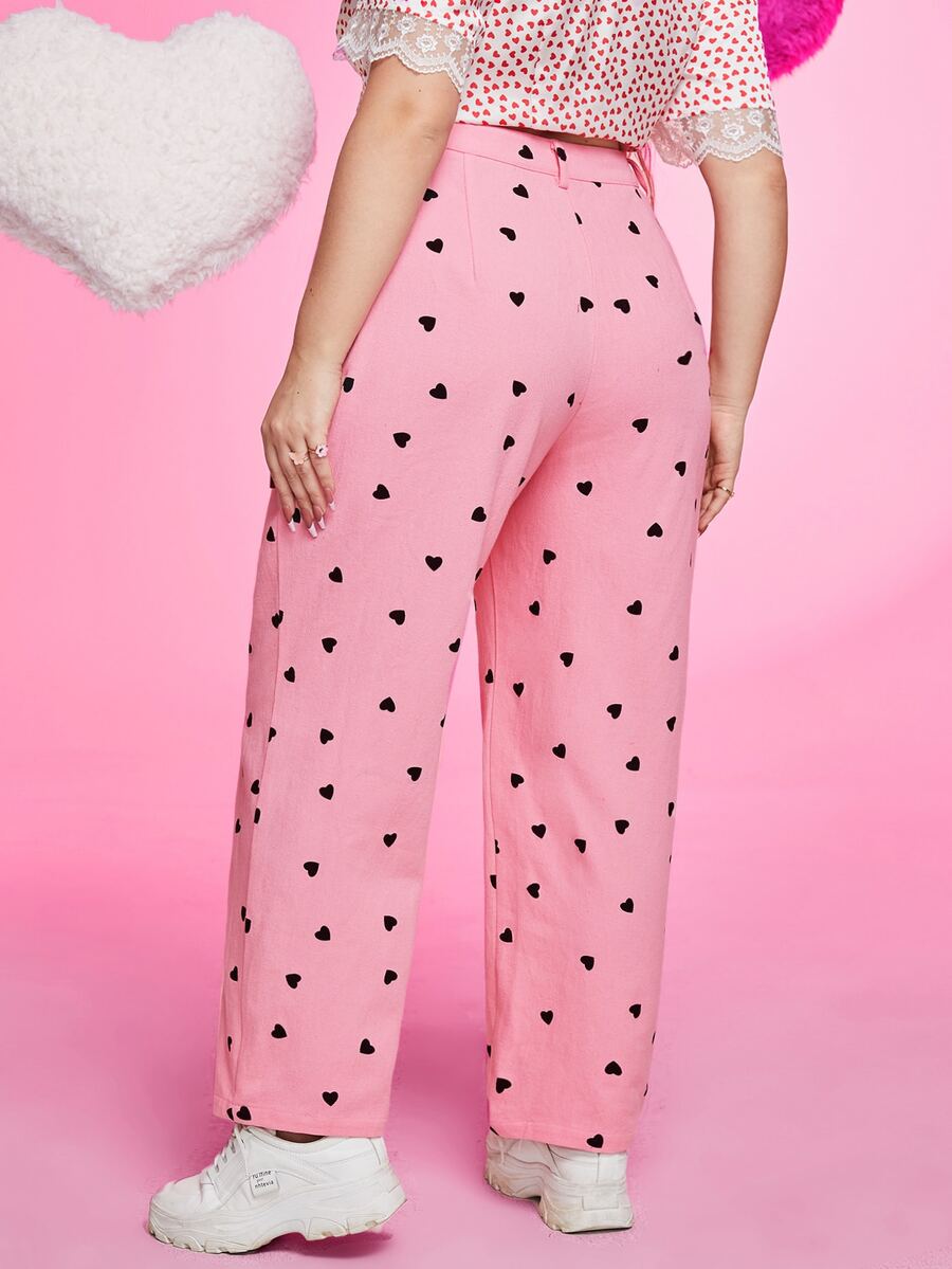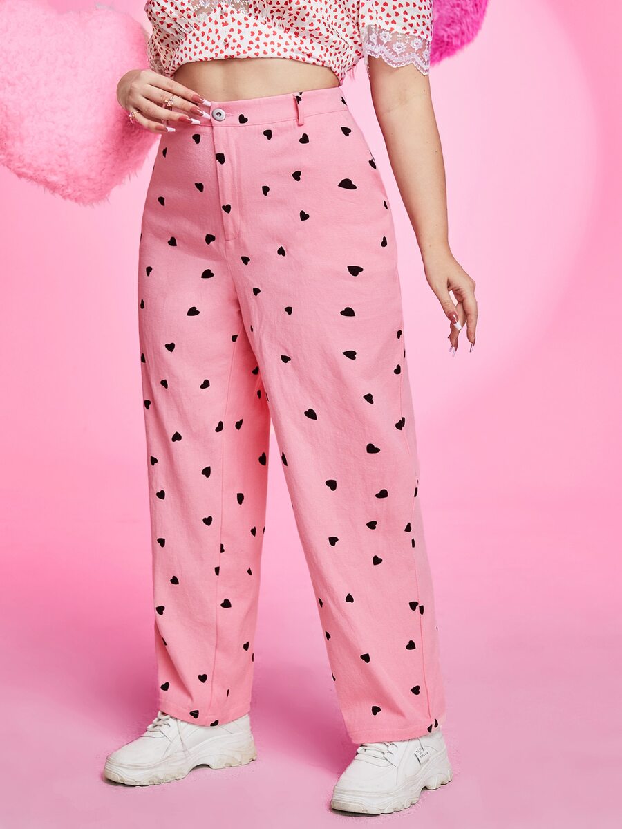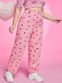 Pantalones rectos de talle alto con estampado de corazón
