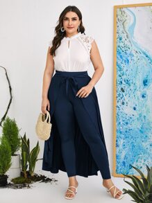 Pantalones falda palazzo larga de cintura alta