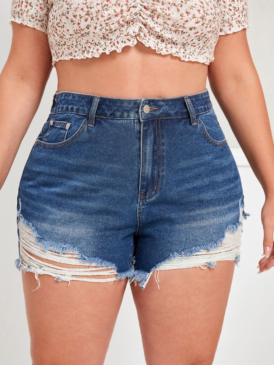 Shorts en mezclilla de talle alto desgarro bajo crudo