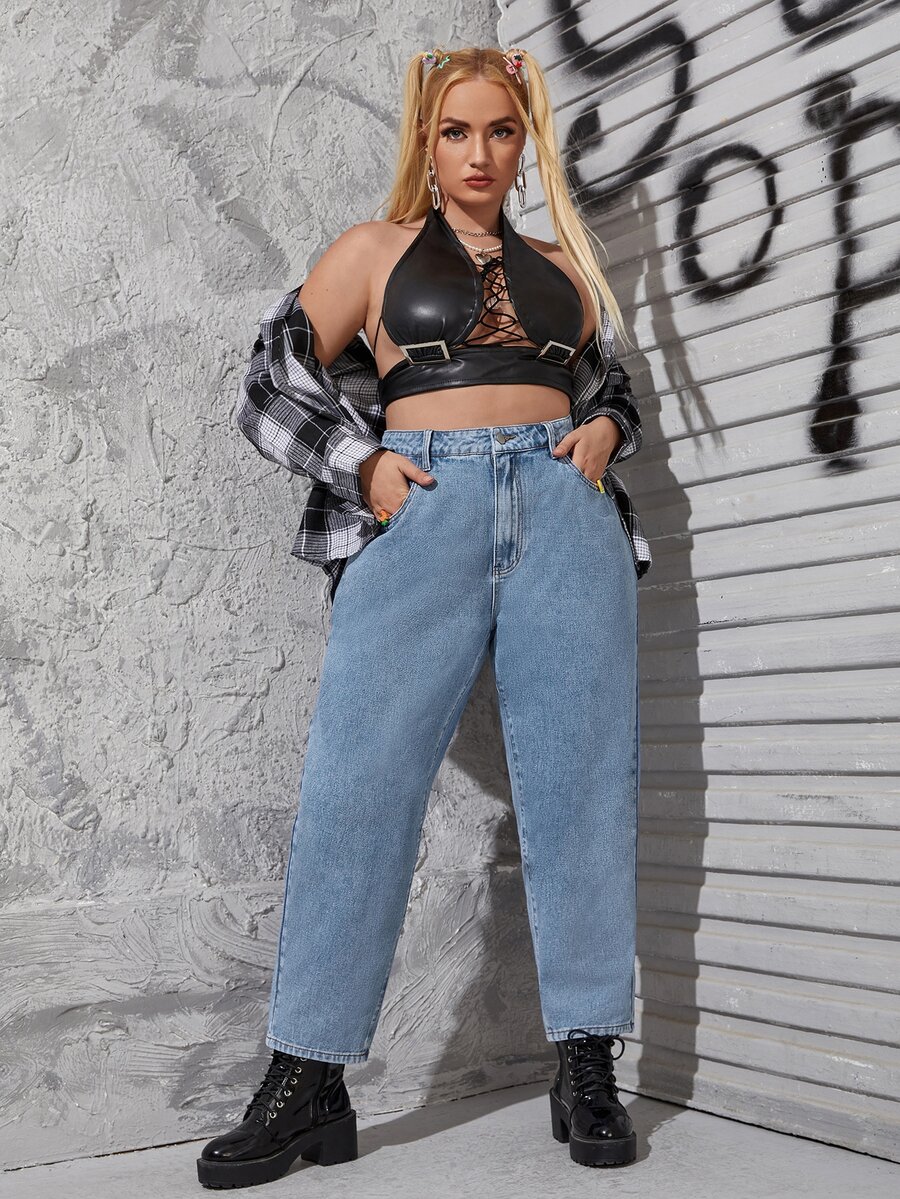 Jeans mom de talle alto con bolsillo oblicuo