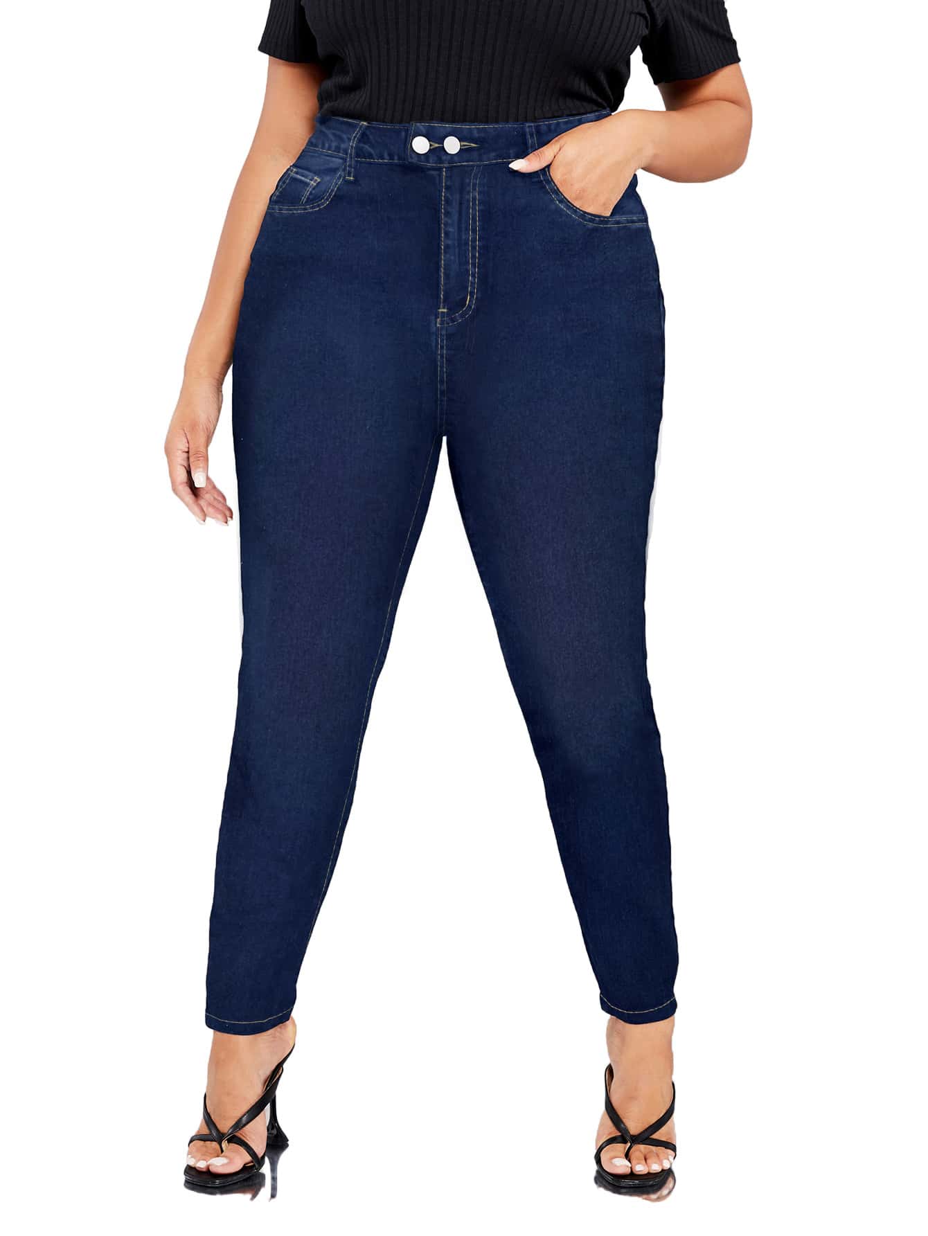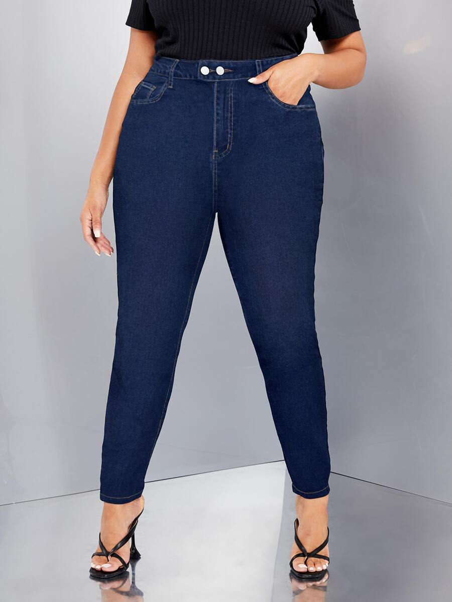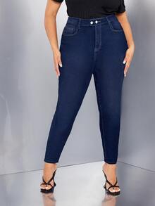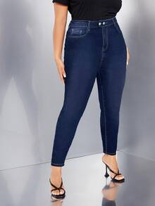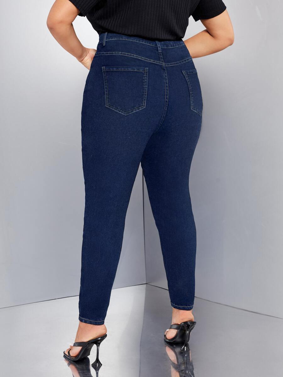 Jeans ajustados de talle alto con bolsillo oblicuo
