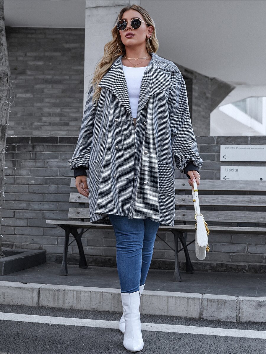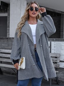 Abrigo con estampado de pata de gallo de manga farol con botones