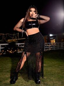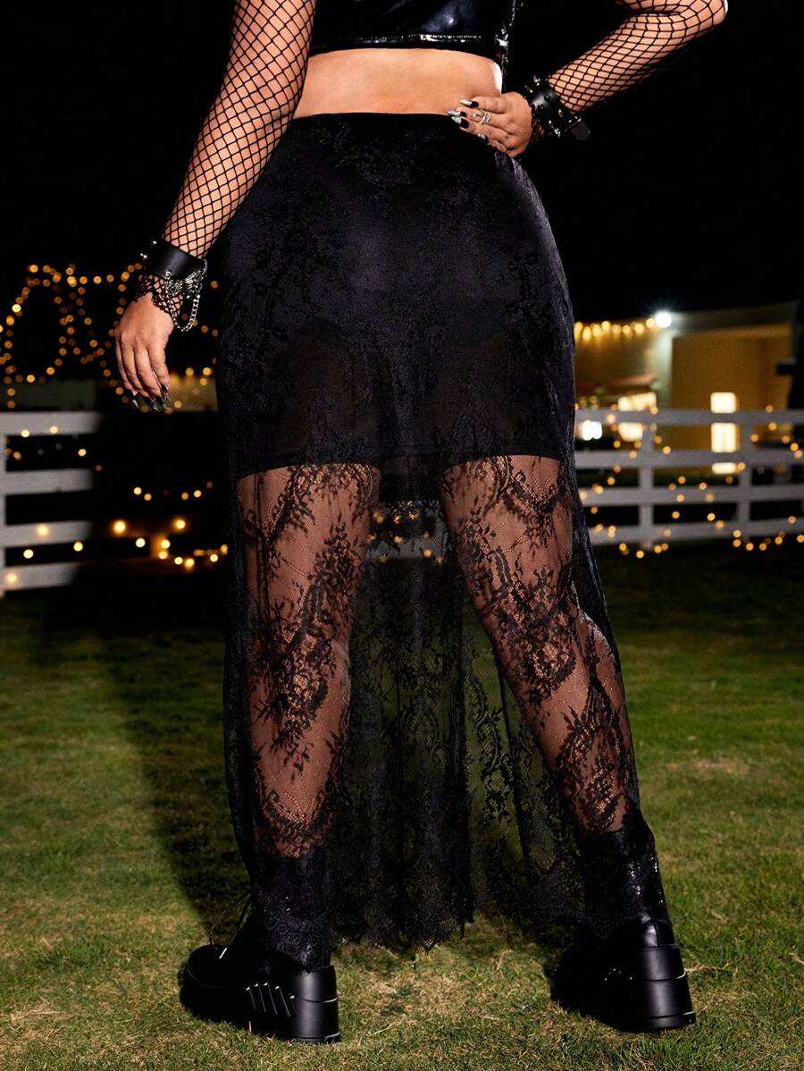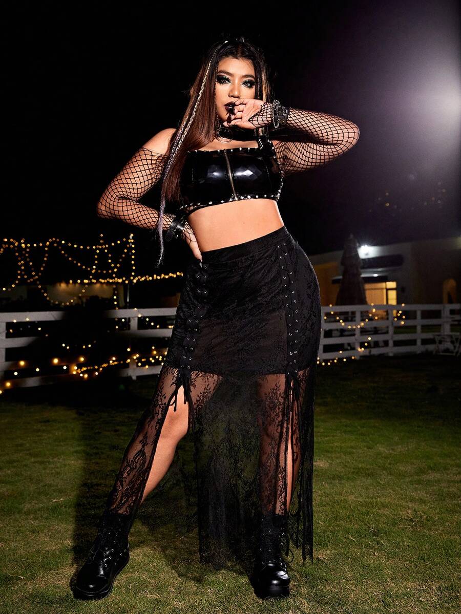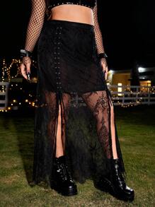 Falda con encaje con cordón delantero de muslo con abertura