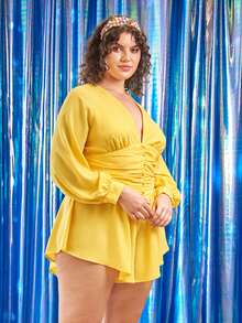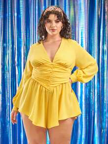 Mono de manga farol fruncido con botón ribete con fruncido
